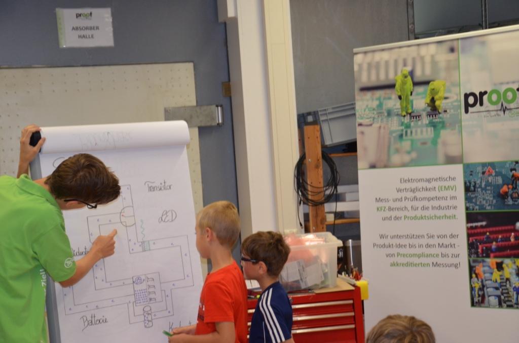 Zum Schluss wurde den Teilnehmern noch erklärt, wie man die Größe eines Widerstandes berechnet und nach ein paar Versuchen durften sie ihr Können im Rahmen eines kleinen Wettbewerbs unter Beweis stellen.