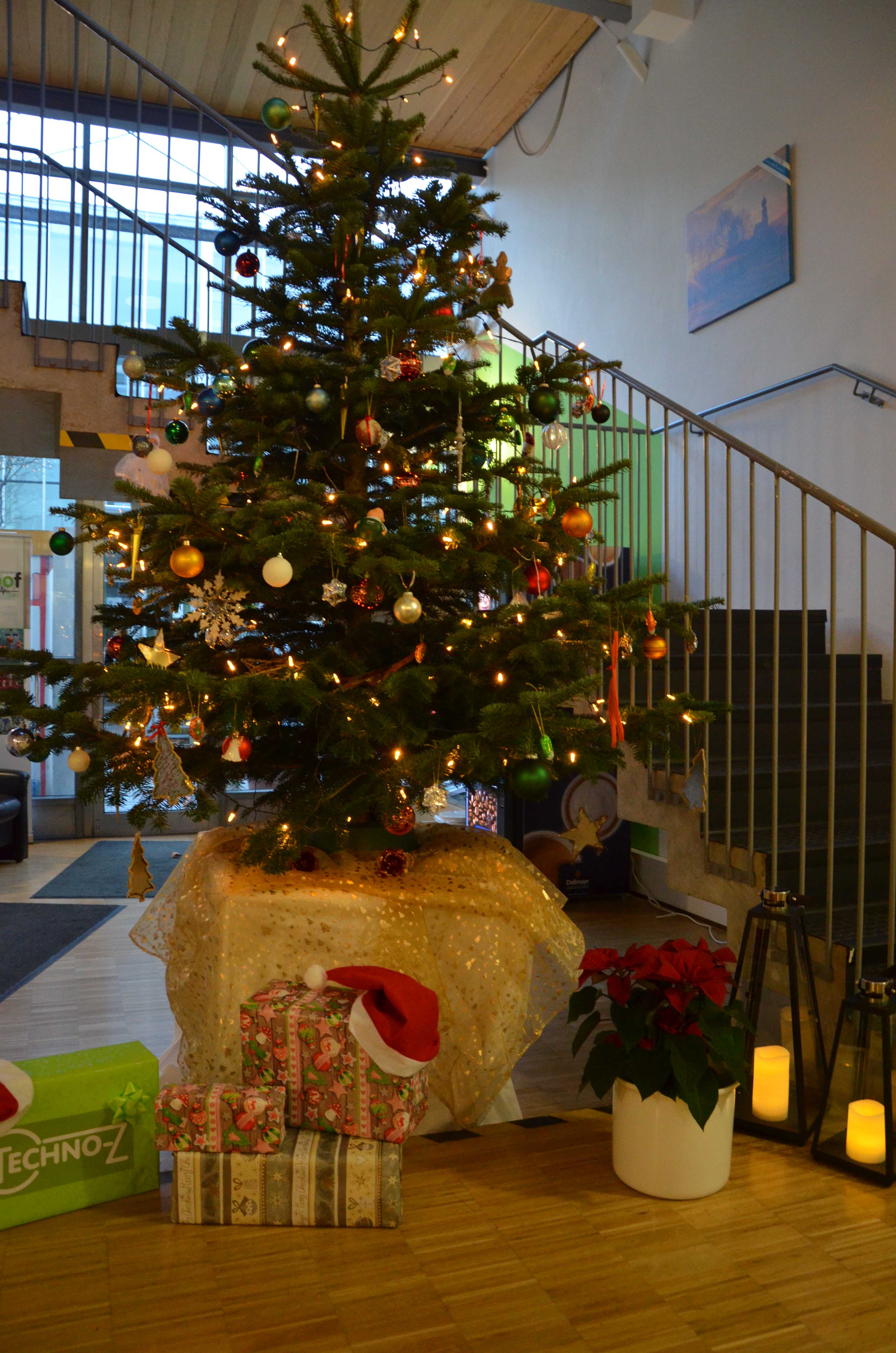 Mit Weihnachtsmusik und gemeinsamen Schmücken, funkelte der Techno-Z Christbaum in wenigen Minuten.