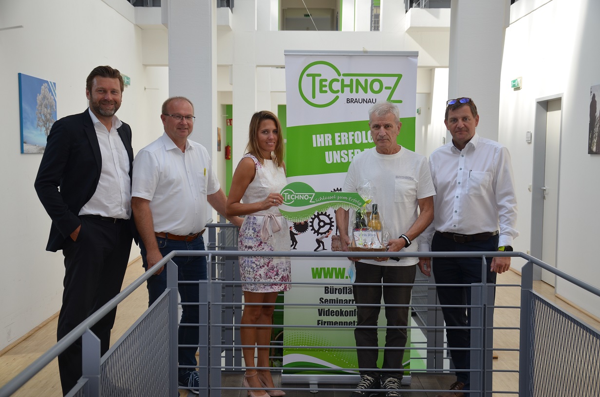 Techno-Z Aufsichtsrat begrüßt neuen Mieter, Erwin Schwack, Wohn- und Objektentwickler, mit dem Schlüssel zum Erfolg
